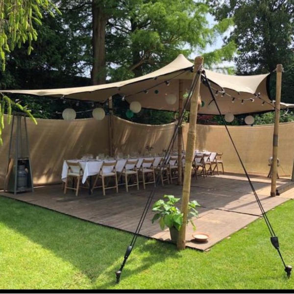 Huur je strechtent en bouw hem zelf op, deze staat voor je klaar op een aanhanger.